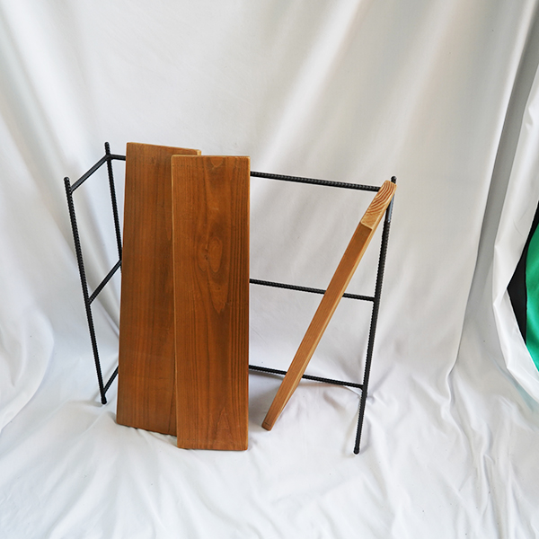 フレームは鉄製でしっかりとしたつくりです。木製板は取り外し可能で掃除の際に便利です。狭い通路にも置いていただけます。