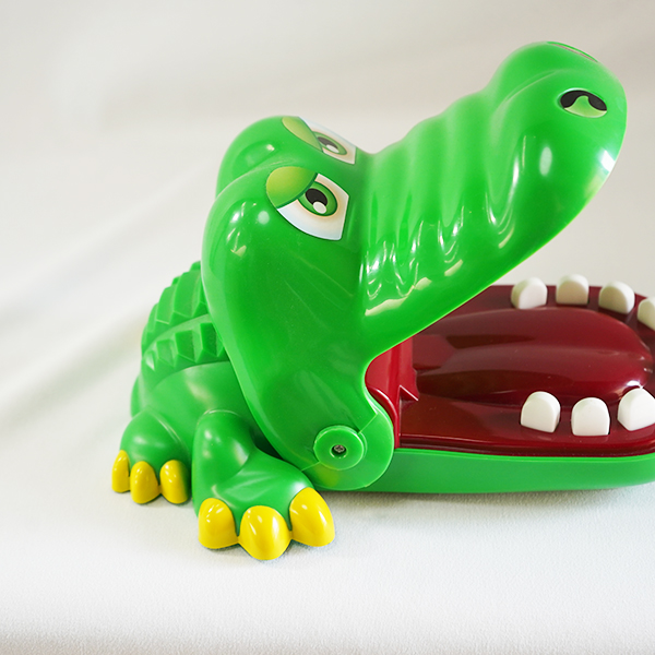 歯の部分を順番に押していき当たると指が挟まれます。家族や友人と過ごす時間を盛り上げてくれるアイテムです。